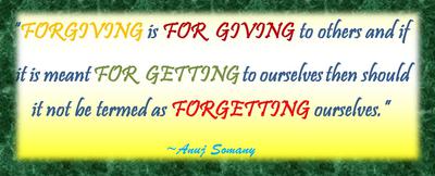 “FORGIVING is FOR GIVING to others and if it is meant FOR GETTING to ourselves then should it not be termed as FORGETTING ourselves.”~Anuj Somany